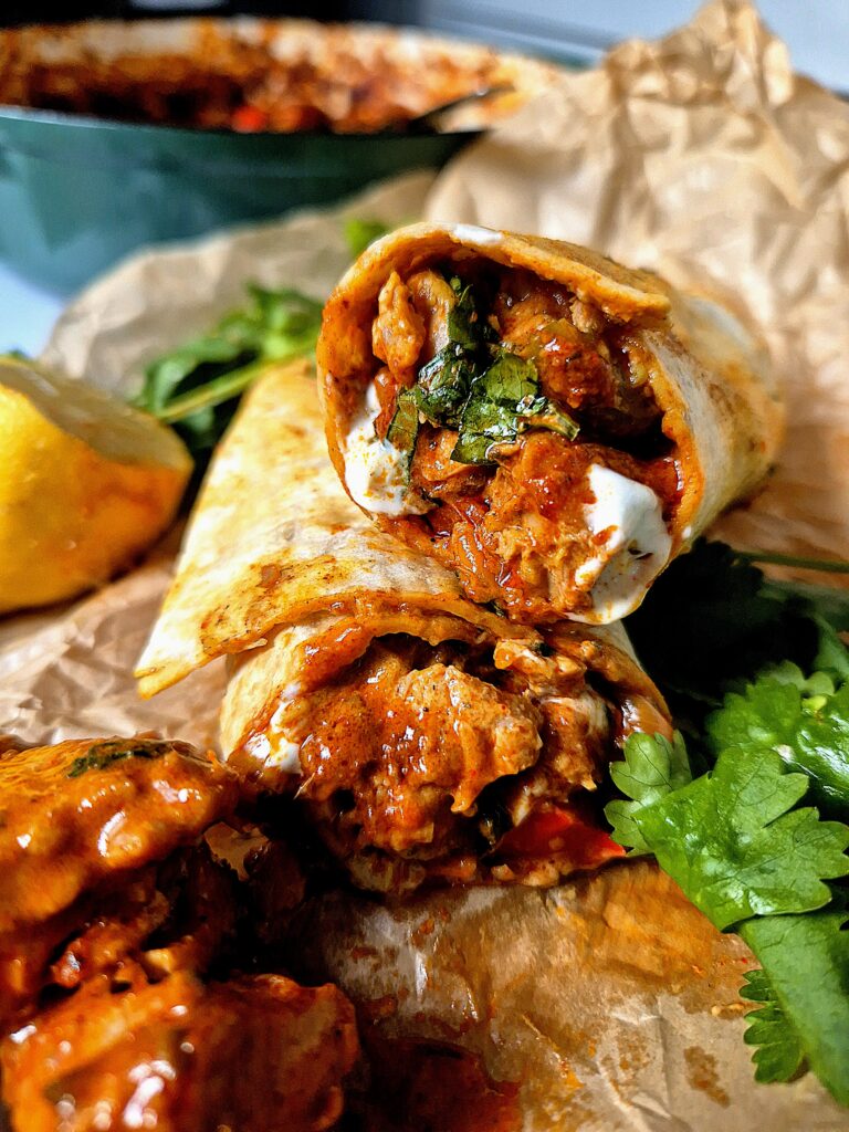 ● The chicken tikka fajita filling should have a thicker sauce, so it’s easier to fill the wraps without making them soggy.